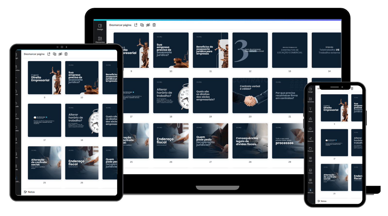 Com modelos profissionais, eles podem criar uma série de posts consistentes para promover serviços específicos, comunicar-se com clientes e compartilhar atualizações da firma, solidificando sua marca e alcançando um público mais amplo.